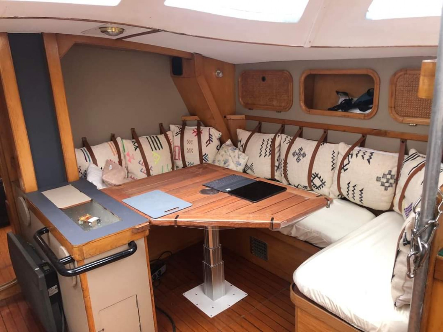 Le rouf court offre un carré particulierement lumineux avec une excellente visibilité. Un voilier clair ou il faut bon naviguer.